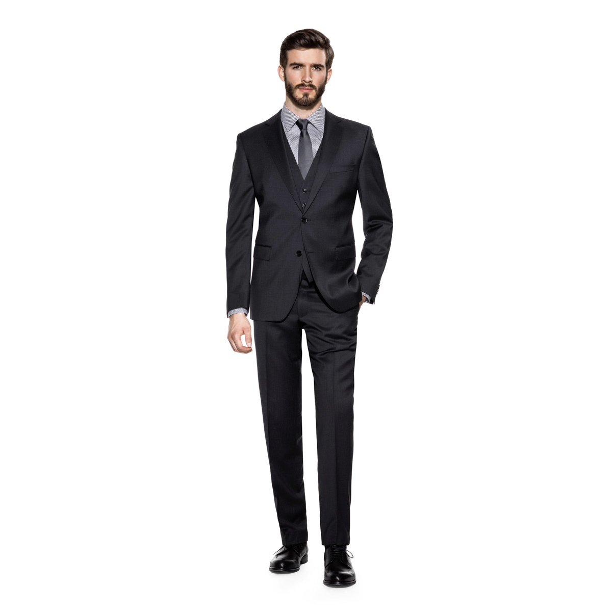 Baukasten-Hose Benvenuto Black (Daily, modern fit). Junger Premium-Business-Anzug in Pure Super 110 - Premium Schurwolle in Natualstretch. Die Vorzüge von Benvenuto Black, Daily sind: modern fit (körperbetonte, schlankere Silhouette), Flatfront-Hose, 2 Gesäßtaschen inkl. Knopf, 2 französische Fronttaschen, einer leicht verringerte Leibhöhe und eine Fußweite von 40 cm bei Größe 50. Die Marke Benvenuto steht für italienisch inspirierte, hochwertige Herren-Business-Mode. Ausgesuchte Qualitäten, hochwertigste Verarbeitung und Kreativität sind die Erfolgsfaktoren.