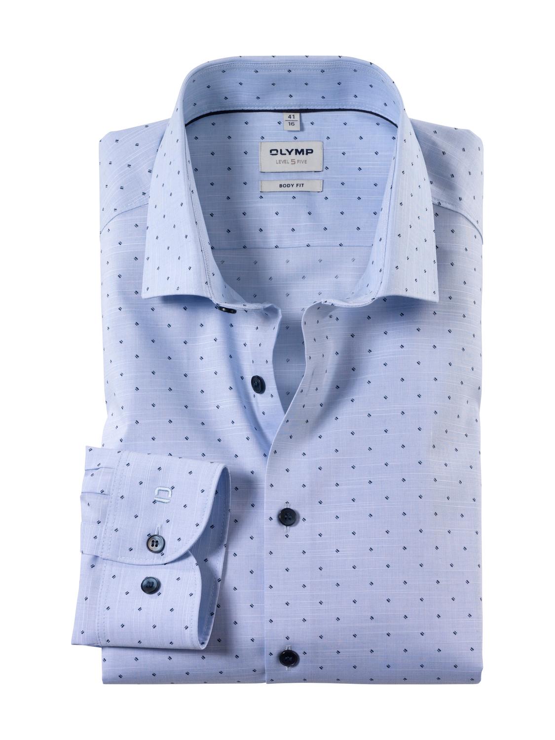 Als Business-Klassiker in frühlingshaft leichtem Popeline ergänzt dieses OLYMP Level Five die stilvolle Geschäftsgarderobe. Das zeitlose Bleu wird durch ein dezentes Minimal-Dessin akzentuiert und begleitet so auch gehobene Anlässe mit souveräner Contenance. Neben den langjährig bewährten Trage- und Pflegevorteilen der beliebten OLYMP Comfort-Stretch-Qualität unterstreicht das Hemd die körperbetonte Silhouette schlanker und sportaffiner Männer. Ein angesagter Modern Kent rundet den Look ab. Hier mit extra-langem Arm.