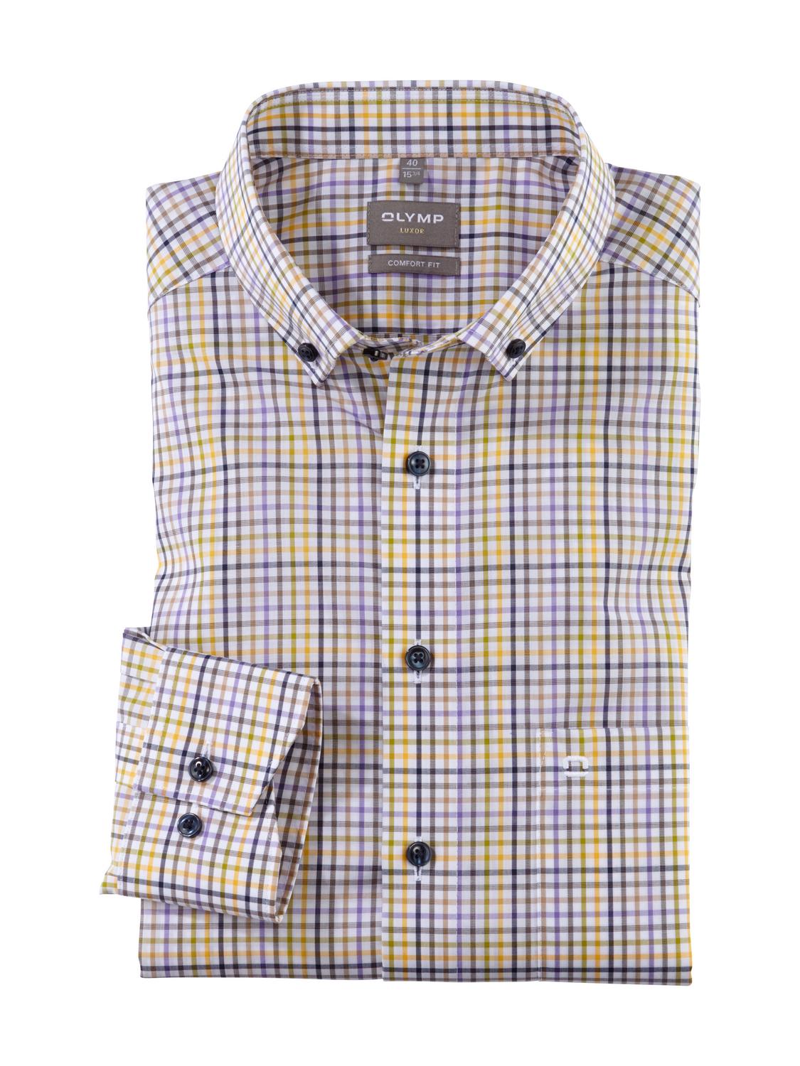 Der Winter ist vorbei! Gewebtes Multicolor-Karo mit Akzentuierung auf Limone anziehen und die Lage sieht plötzlich ganz anders aus. Energievoll und sportiv präsentiert sich dieses OLYMP Luxor comfort fit in geradliniger Silhouette. Die reine Baumwolle in feiner Garnausspinnung sorgt für den hautsympathischen Tragekomfort und ganz nebenbei für zeitsparende Pflegeleichtigkeit. Ein distinguierter Button-down unterstreicht den Team-Charakter und verzichtet optional lässig-elegant auf die Krawatte.